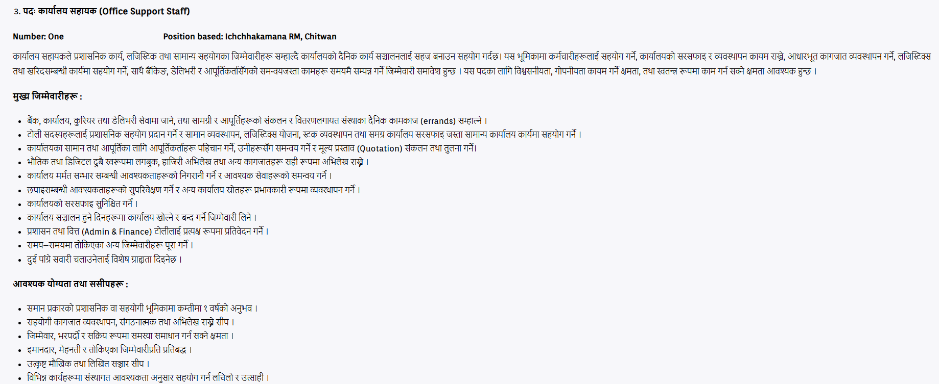 - Good command of Nepali language; knowledge of local languages is an asset.